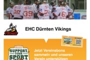 Geh auf die Webseite https://supportyoursport.migros.ch/de/vereine/ehc-duernten-vikings/ und weise den Vereinsbon den Vikings zu.